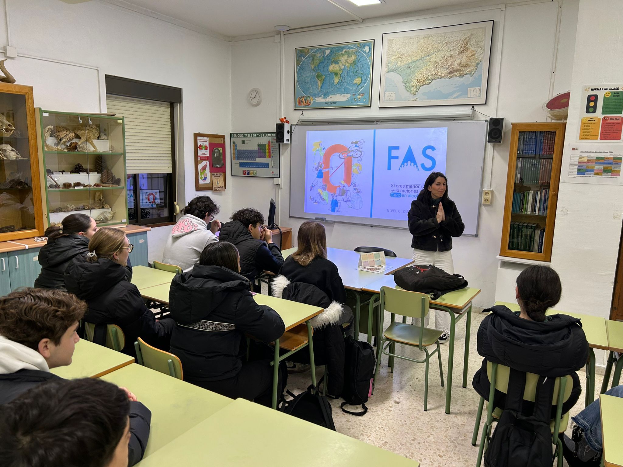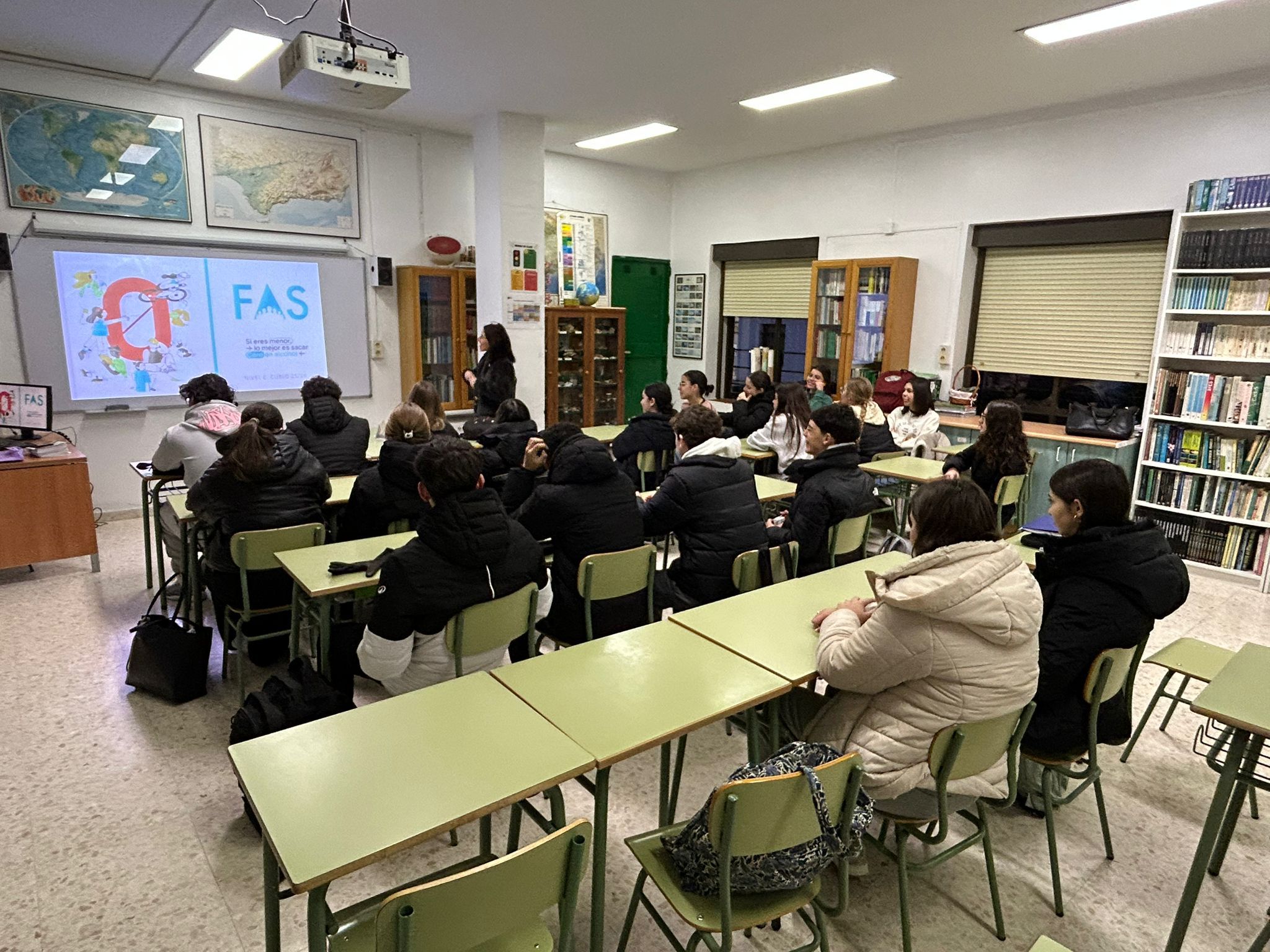 Un año más se han desarrollado en nuestro Centro las charlas de Alcohol y Sociedad, impartidas por la Fundación FAS 🤝. Esta actividad tiene como objetivo principal concienciar al alumnado sobre la importancia de la prevención del consumo de alcohol en menores de edad 🛑🍺, proporcionando información clara y adaptada a su realidad.