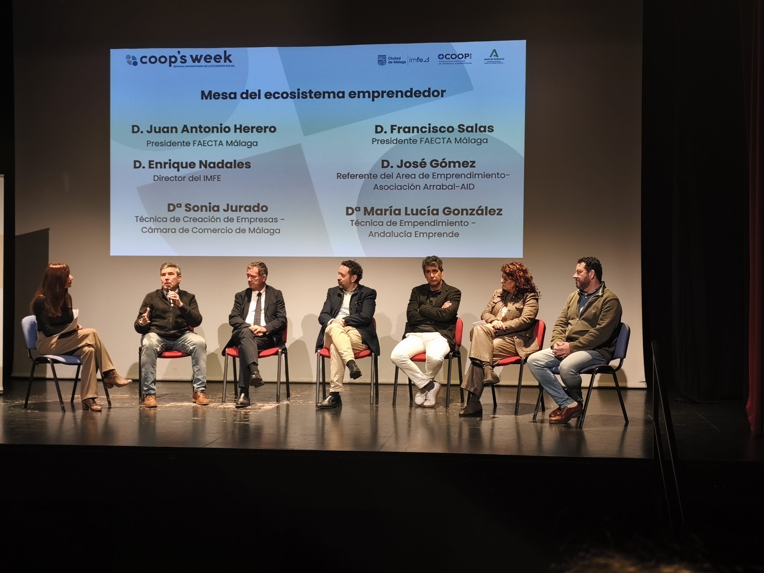 COOP WEEK DE FP organizada por Faecta. Hoy el alumnado de los ciclos superiores ha tenido la oportunidad de aprender de expertos/as que han compartido su experiencia emprendedora. Desde tu idea de negocio, superando miedos y riesgos y contando con el apoyo de múltiples entidades malagueñas es posible.